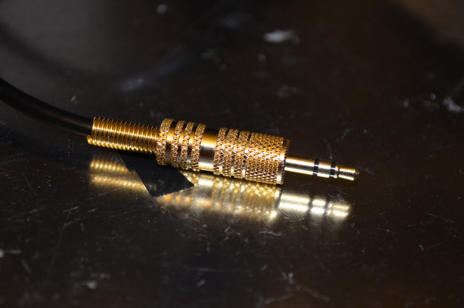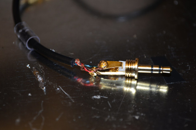 The plug I used here made the wire poke my shoulder while wearing the headphones because it was too big. I later swapped it out for a smaller REAN connector.
