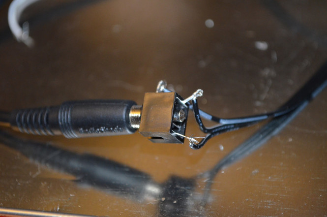 I soldered the left and ground wires from the connector to the driver (first & last pin, respectively. In the below image, the right side is not attached yet.