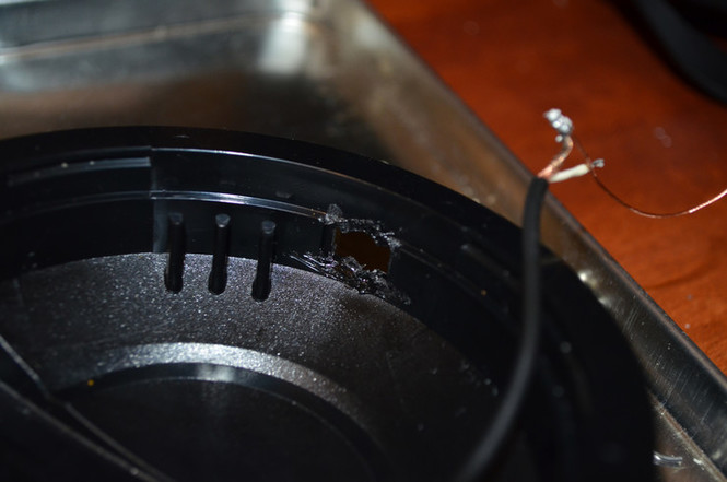 Wire hole from the outside, post-enlargement.